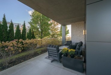 This sophisticated 3-bedroom, 3-bathroom, residence offers 1,980 sq. ft. of executive living- the largest floor plan in this boutique, 4-storey building- with the privacy of a residential cul-de-sac setting. Ten-foot ceilings and expansive windows create a bright, airy layout. The interior entry opens to beautiful hardwood flooring, a gracious living room anchored by a floor-to-ceiling, tile-surround, gas fireplace and overlooks the private landscaped green space and covered patio. This corner residence enjoys an expansive, manicured, fenced, wrap-around yard with private exterior access-maintained for your convenience. A fantastic feature perfect for summer lounging, dog lovers and. gardeners. Modern kitchen blends style and function with stainless steel appliances including a 2025 Bosch oven, quartz surfaces, a newer single-piece quartz backsplash, sleek white cabinetry, pendant lighting, and a centre island with bar seating. Three bedrooms include two with spa-inspired ensuites and fully outfitted, walk-in closets. The third bedroom doubles as a private office/den. Separate powder room is perfect for guests. Set quietly at the end of the hallway, the home offers exceptional privacy. Radiant in-floor heating follows the windowed periphery on the main floor. Rare feature: natural gas fireplace, cooktop & BBQ hook-up on the patio. A multi-camera system provides real-time views of the entry and lobby directly from your unit. One underground parking space, one above-ground, covered parking space, and a storage locker in the temperature-controlled underground garage are all owned. North Point Lofts is a smaller, close-knit community in a prime Masonville location with a Walk Score of 84-close to shopping, dining, parks, and trails. Western University, LHSC, and St. Joseph's Hospitals are under 10 minutes; Fanshawe College and London International Airport about 20. Walking paths, playgrounds, fitness clubs, and golf courses nearby add to the lifestyle.