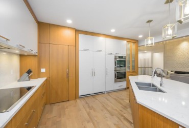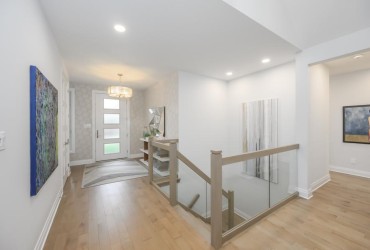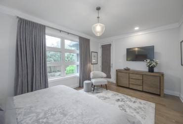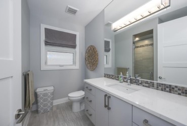 The primary en-suite is a zen space with a deluxe soaker tub, large tiled, glass shower including a bench, his and hers vanities bordering the make up counter. It’s convenient to have 2 full bathrooms in main floor with a guest powder room and an additional bathroom in the finished lower level.