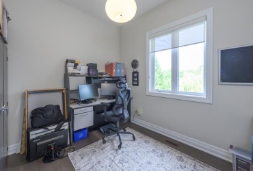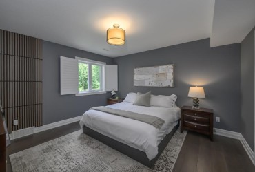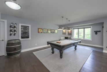 Welcome to a remarkable riverfront property nestled on 1.42 acres of wooded privacy just 20 minutes from London. This custom-built executive bungalow offers approximately 2,680 sq ft on the main level plus over 2,100 sq ft of beautifully finished walkout space designed for elevated living and immersive connection to nature. A sweeping drive leads to a striking exterior framed by mature trees and manicured landscaping. Inside, 10 ft ceilings, rich hardwood flooring, and expansive windows with Custom Hunter Douglas automated blinds, automated blinds, create light-filled, refined interiors. The great room is anchored by a dramatic floor-to-ceiling stone fireplace flanked by custom built-ins, flowing into the open-concept dining area and chef's kitchen. Wrapped in natural light, the kitchen and dinette feature granite surfaces, a pot filler, walk-in pantry, oversized island, premium stainless appliances, and elegant pendant lighting offering the perfect place to gather and entertain. Step onto the full-length covered deck to enjoy birdsong, the babbling creek, and the rustling leaves overhead. Automated screen enclosures offer comfortable evenings outside. The main level includes two generous bedrooms, a dedicated home office, and a luxurious primary retreat with walk-in closet and spa-like ensuite. A thoughtfully designed laundry/mudroom adds convenience with custom cabinetry, garage access, and a tiled dog wash. The fully finished lower level adds three bedrooms (one w/ensuite), a full bath, and a sprawling family/media room with an oversized screen ideal for unforgettable movie nights or relaxed weekends with loved ones. Step outside and follow the winding forest trail to a hidden riverside surprise: a heated bunkie with hydro, bar and firepit - your own enchanted escape. The heated 3-car garage offers 14 ft ceilings, a hydraulic lift, and a rear office/workshop. A rare lifestyle offering where elegant design meets the natural world in perfect harmony.