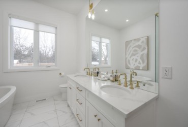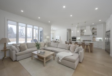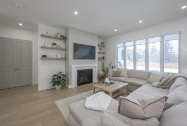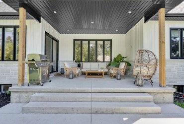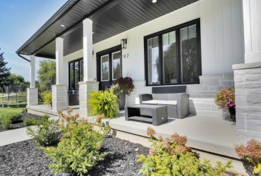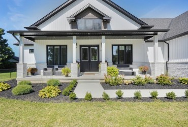 The façade is captivating, and quietly confident - layered stone, board-and-batten, softened by a wide covered front porch that invites you to slow down, sit awhile, and let the day fall away. Inside, the mood is calm and tactile. Ten-foot ceilings, natural white oak hardwood, and intentional lighting create rooms that feel refined and comfortable. The kitchen is the heart - quartz surfaces with a soft, luminous finish, a white oak island that begs for lingering conversation, and a hidden walk-in pantry that keeps entertaining effortless and unrushed. The great room glows around the gas fireplace, a place for late-night talks and easy Sunday mornings. Custom detailing threads quietly through the home - tailored millwork, balanced proportions, and thoughtful materials that give each space a sense of permanence rather than trend. Every bedroom is a private suite with a walk-in closet and ensuite - a luxury that changes how a home feels. The primary retreat is gently indulgent: heated floors underfoot, a spa-inspired bath with layered tile and glass, and a custom closet with brushed gold detailing that feels personal and carefully crafted. A discreet main-floor office offers focus without isolation, while the mudroom with built-ins and walk-in closet keeps daily life graceful. The lower level extends the rhythm - a 4th bedroom with ensuite, a generous recreation room, and space to move, breathe, and host without compromise. Thoughtful lighting, quality systems, and meticulous construction run quietly behind the scenes. Outside, the fenced 108 x 180 lot offers privacy and possibility - long summer evenings, gardens, future pool days, and room for laughter to travel. The oversized triple garage and concrete driveway provide parking for eight with ease. Minutes from Komoka trails, village shops, and London access, this is a bungalow that feels cocooning, confident, and quietly luxurious - a home that grounds & nurtures you while life unfolds.